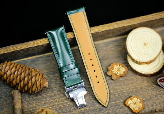 Green Shell Cordovan Leather Watch Strap 14-24mm | Army Green Watch Band - KeyWatchLeather